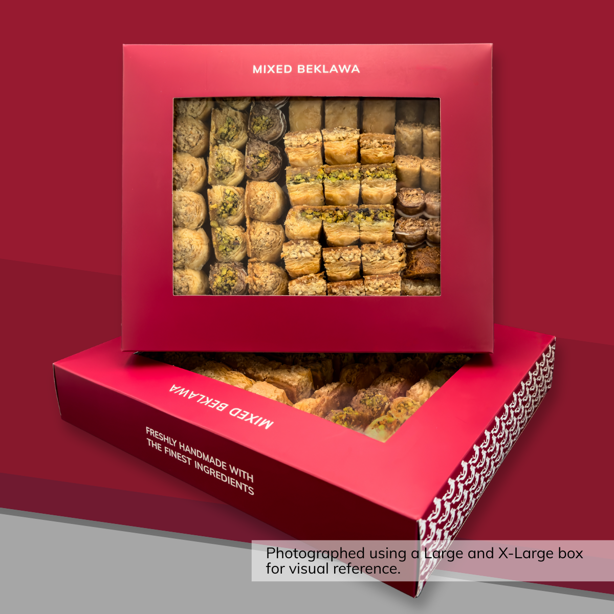 An exquisite selection of our handmade beklawa filled with pine nuts, cashew and pistachio in a gift pack.