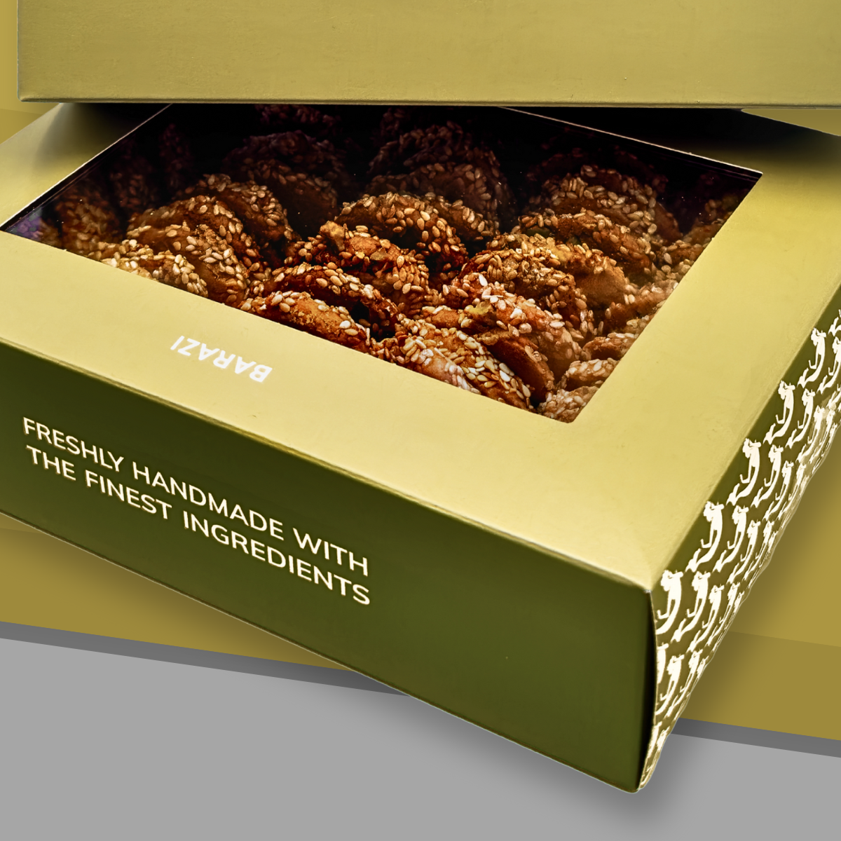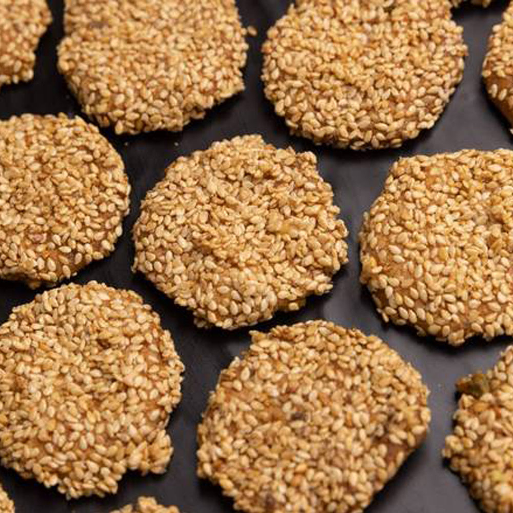 A buttery sweet dough biscuit with pistachio generously coated in roasted sesame seeds.Approximately 330gmSold per pack