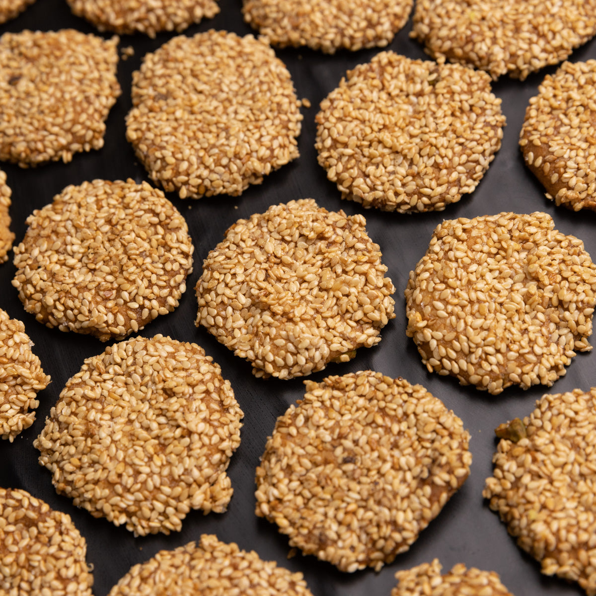 A buttery sweet dough biscuit with pistachio generously coated in roasted sesame seeds.* Approximately 330gm.* Sold per pack.